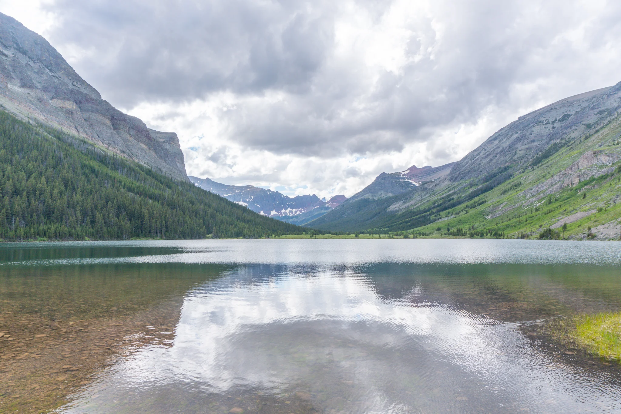What a relaxing day! And technically my first on-trail zero day as well. I slept in as long as I could (930am) and was feeling pretty sore from the medium-mileage first day. I attribute this to the weight of seven days of food, microspikes, and bear mace, but it was nice to have and easy day to recuperate. I did a lot of stretching and then hopped in my hammock to read my new book, The Indifferent Stars Above, about the famous Donner Party. Eventually I departed to make my gruesome four mile haul over flat terrain but I was happy to yet again find a great hammock site. Glacier recommends that you do not hammock since all hikers must stay in designated raised platform tentsites at designated campgrounds and you may not trample any vegetation. In a pinch, I can rig my set up as a tarp and sleep on the ground but I love hammocking so I decided to risk it. My new spot was just ten steps from the waters edge and I had time to enjoy it. I met some section hikers during lunch and then I retired to my place to sew up my rapidly disintegrating Space Jam shorts then took a nap. I iced my feet in the lake and read some more throughout the day.