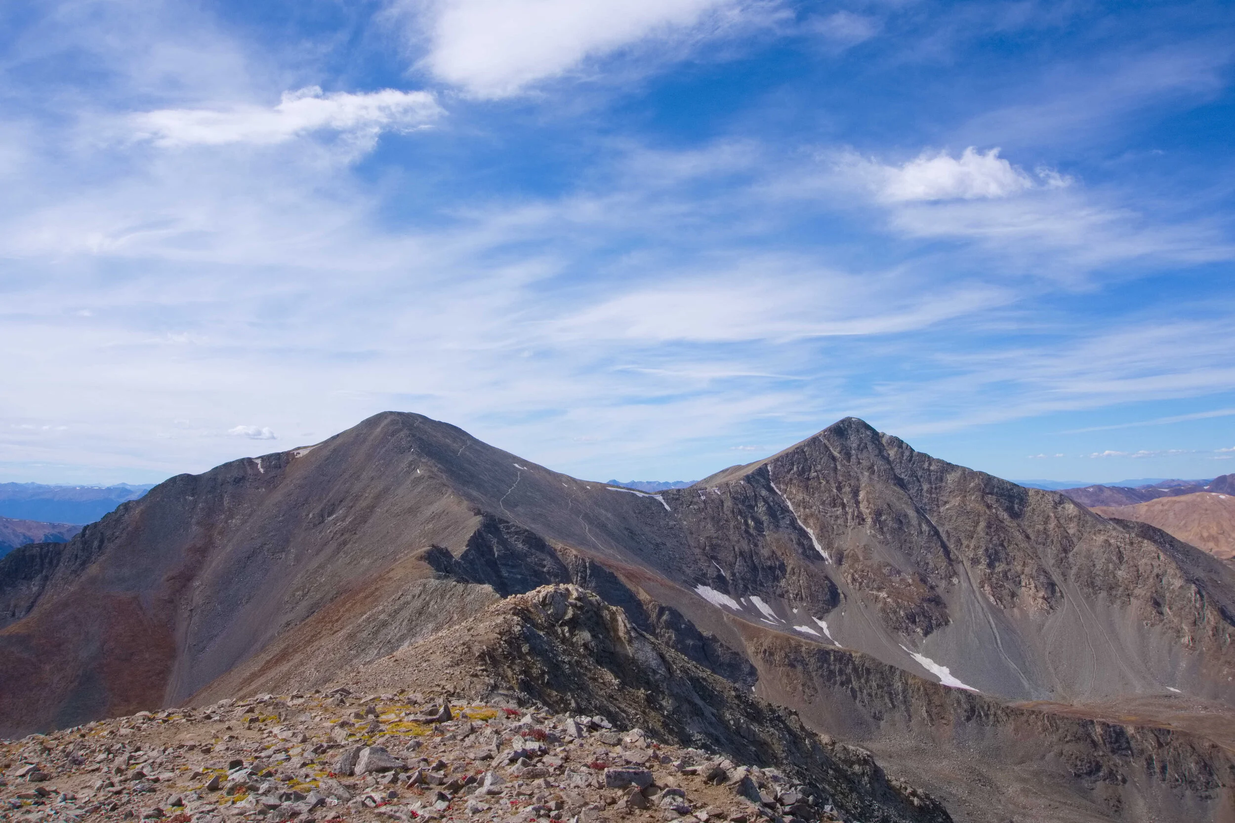 Standing on top of Grays Peak (with Torreys Peak behind me)