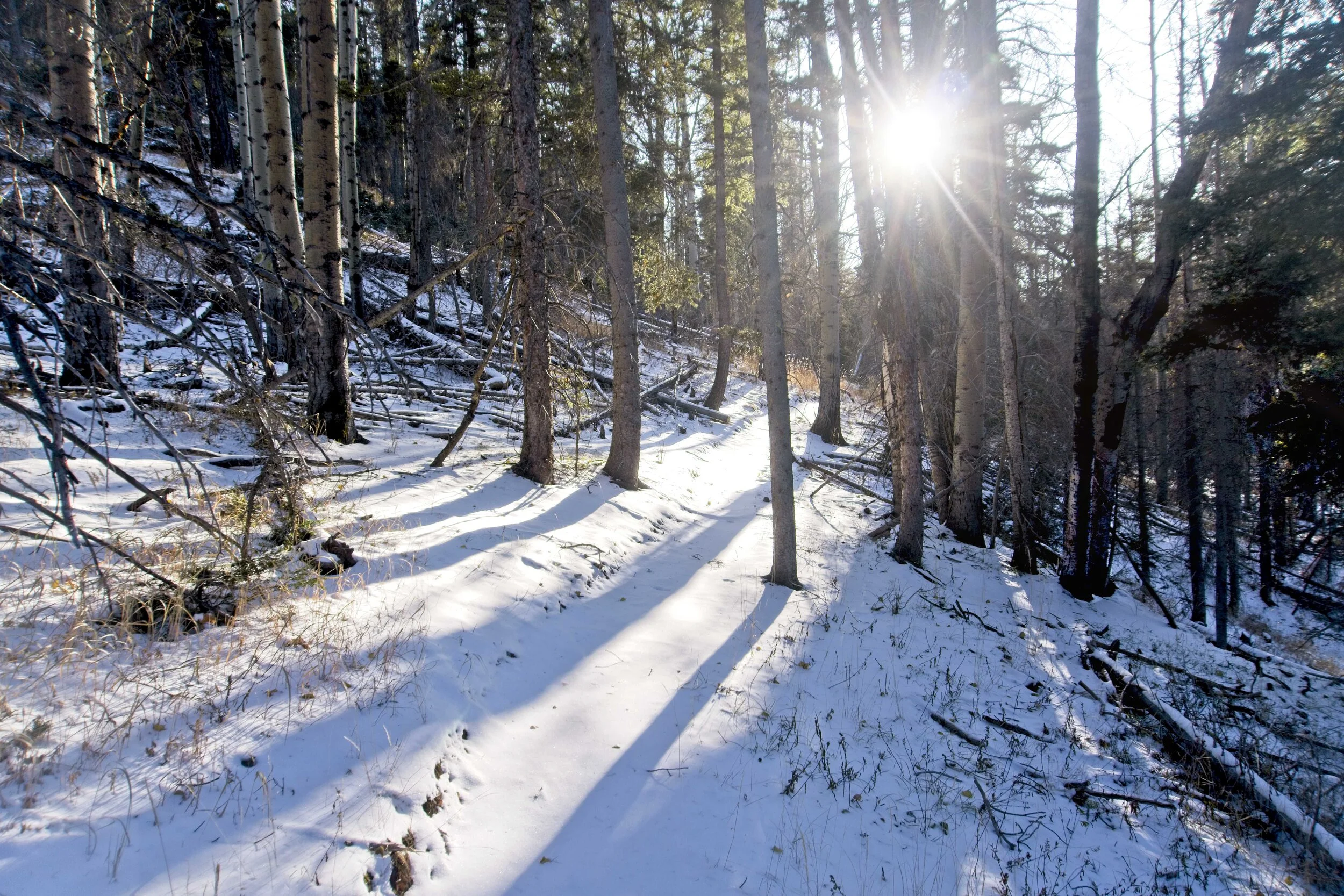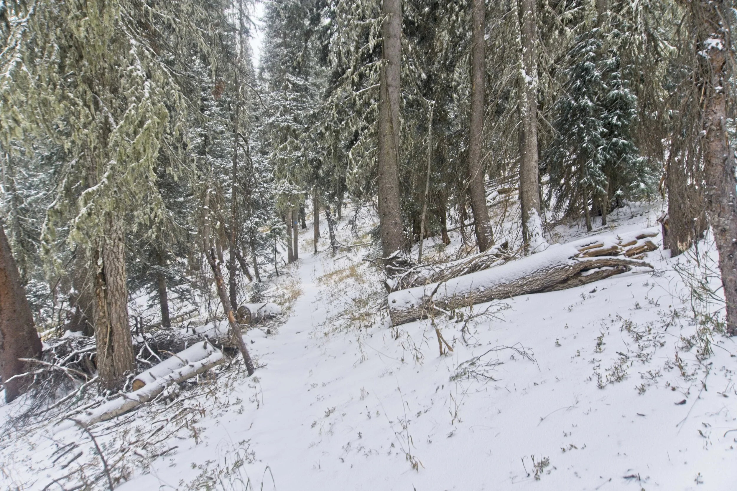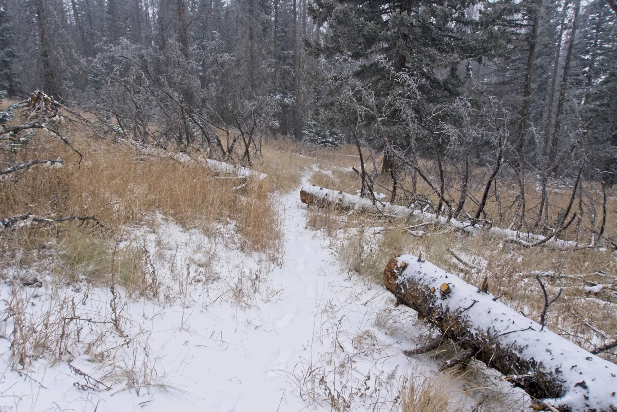 I made quick work of the 2.9 miles to the Colorado - New Mexico border and now could officially be 100% done with 4 of 5 states. I took some pictures at my final state line crossing and tried to get back in high gear. The falling snow hid the trail and at one point I missed a turn, followed a creek, and almost looped back up to the border. I tried to aim straight up a seam in the topography to get back on trail and wiped out hard on some hidden ice. I was enjoying the stillness of the landscape and soon it stopped snowing. However, the temperature continued to dip and I noticed my water bottle was icing over so I moved it inside of my jacket and kept it there to keep it in liquid state. When I stopped to fill up, the little stream was frozen and it was the last water for 11 miles so I had to stab the ice with my trekking poles to get to water below. I grew extremely cold as I stopped moving to collect my water and filter it. I also realized I wasn’t going to make it my planned 20 miles to camp before dark and it would be smarter to stop short and have time to build a fire before the chill of the night fully set in. After 15.6 miles, I was completely exhausted and cursed myself for not working out at all on my vacation, my trail legs had vanished.