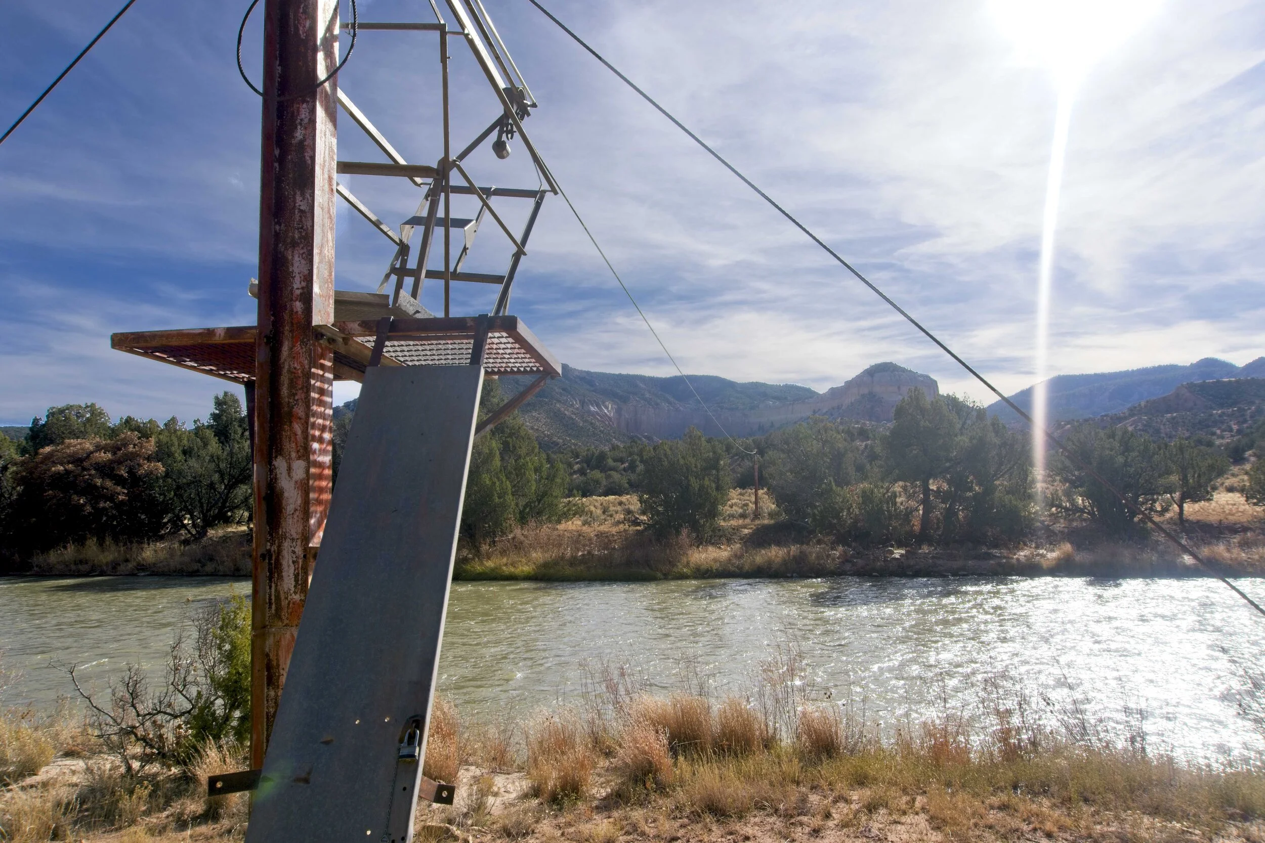 I would’ve loved to ferry myself across the Rio Chama in this suspended basket! But it was locked up.