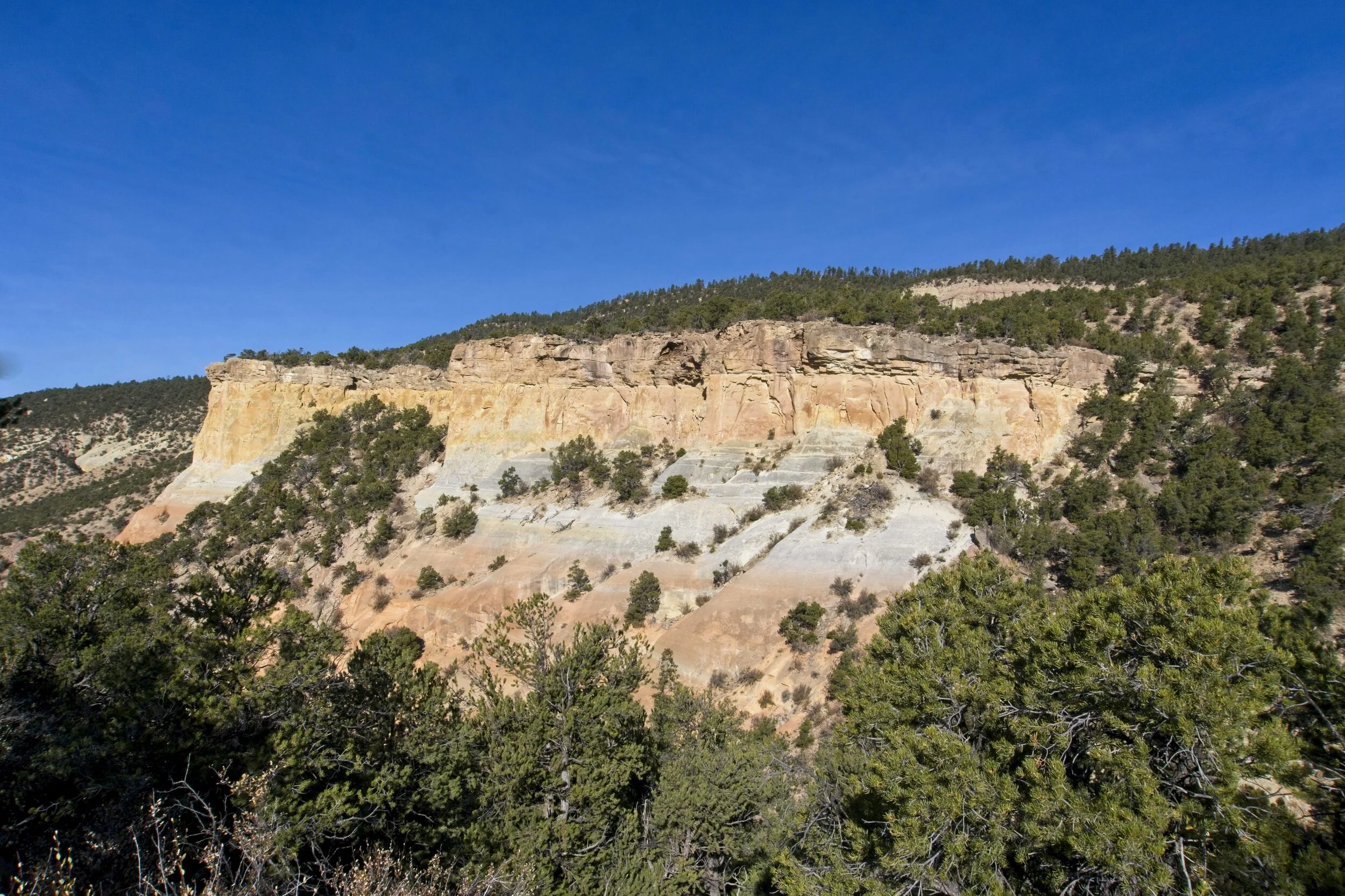 A heard of at least two dozen elk retreating into the trees. Just a couple miles North of here I met a disgruntled hunter who had spent three days searching for elk and hadn’t seen a single one.