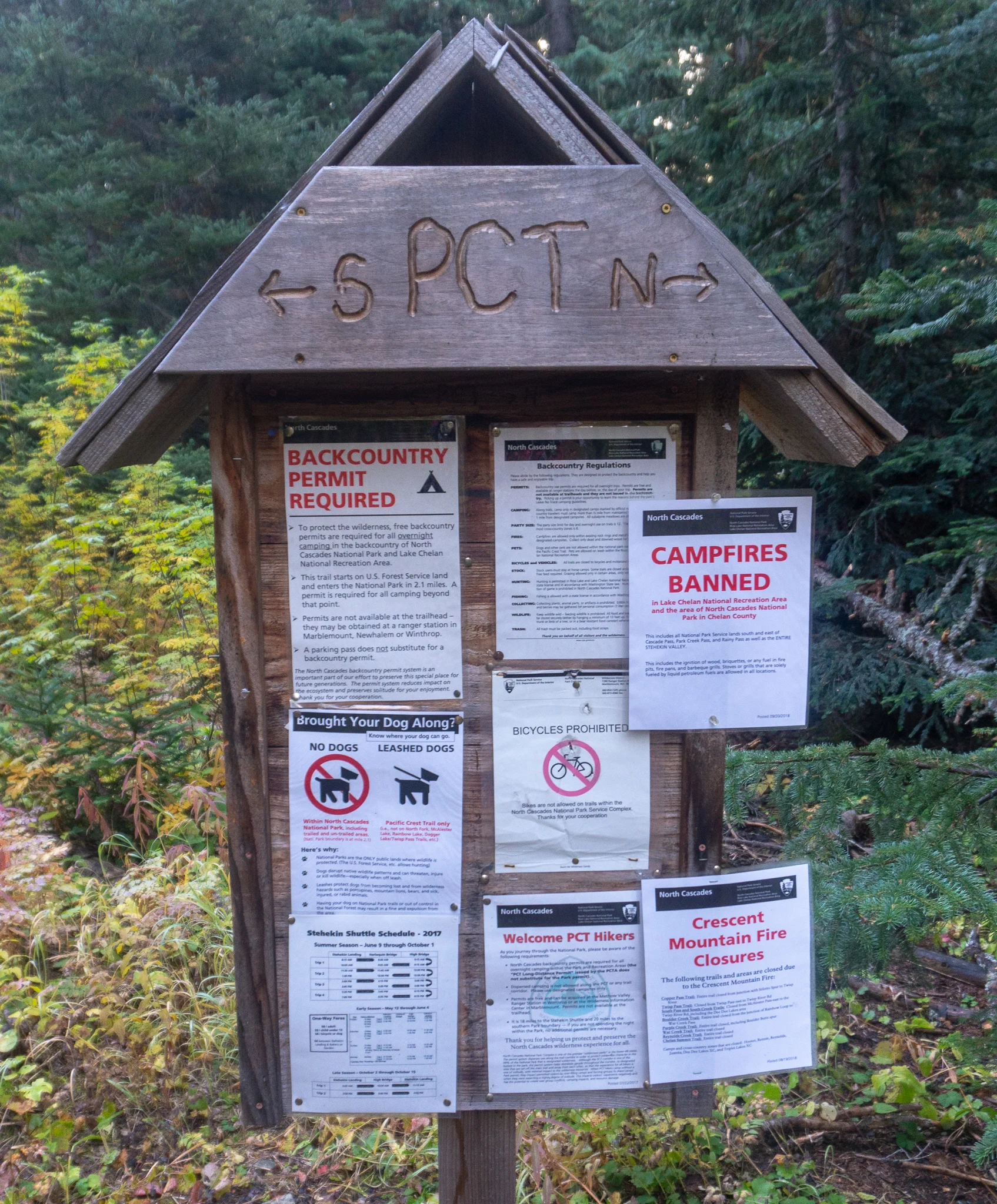 We hoped that some more of the trail fam would catch up on the Tuesday ferry so we had plenty of time to kill until it arrived. Sea Lion and I walked back down to the laundry room to collect some things we left to dry overnight then moseyed down to sit by the water and enjoy our pastries from the bakery. We went to the general store to buy some WiFi and plan out our trip back home. We decided to postpone the plan to return to northern California and hike Section O (which we skipped due to wildfires and smoke) since a flight home from Sacramento would be twice as expensive as Seattle, it'd be a ton of driving, we were weary, and Sea Lion would be lucky if her shoes could make it another 90 miles to Canada. We returned to pack up camp and then went to the diner to grab lunch with Moose and Midge. We chilled on the big porch until the ferry pulled up and Pickle Pacer climbed out and joined us. After a few quick chores he was ready to roll and we all piled into a shuttle to go back to the trail, but first we stopped at the bakery again! Chris and Pete, our Aussie friends from Day 1 and who helped with Sea Lion's foot surgery, were there and it was great to see them one last time. The mood was happy and somber since this was the last time everyone would be heading back to the trail. In just four days the journey will conclude. We were the last to leave the trailhead and leapfrogged quite a few hikers before stopping to take a break at a campground with picnic tables. We debated if we wanted to stay at the next campground and night hike a bit to get out of the Northern Cascade Park boundary. There was a bit of a communication breakdown where the boys went to “Six Mile” campground, which was the location we obtained a permit for, but Sea Lion and I hiked on to the park boundary. We stopped for dinner in the diminishing sunlight and then had a few miles to night hike and a ton of log bridges to cross. One of which was on a wrong turn and Sea Lion was excited to get to cross the 12 foot tall bridge without handrails, not once but twice! Nevermind, that was me, she hates log bridges.